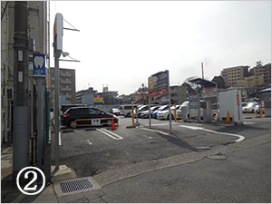 少し細い道ですが、このまま進んで頂くと写真②の駐車上に到着します。