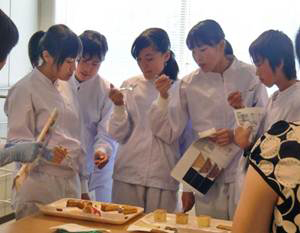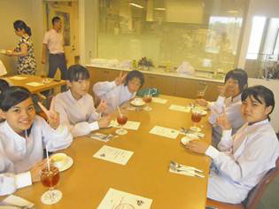食事のあとは、商品開発の実習。テーマは「コーヒーに合うスイーツの開発」。16種類の有名店のお菓子を実際に試食。値段も確認しながら中2なりの率直な意見を言い合う。子供たちは驚くほど能弁だった。特に女子4人は、地方都市在住とは思えないほどキレのいい意見を言い合い、最初は余裕の構えの商品開発部の丸山さんが、真剣にメモを取って対応している。この子たちはいずれ本当にやってくれるかもしれない。
