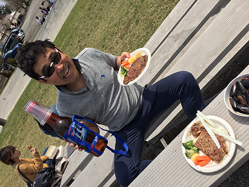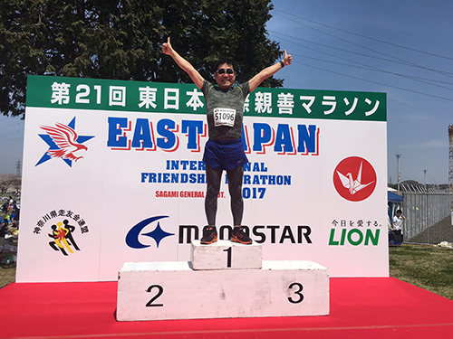 「東日本国際親善マラソンに出よう!米軍の相模補給廠の中であるレースで。走りやすいコースだし、終わったらBBQみたいな屋台がたくさん出ておいしいし、アメリカっぽいし、なんと5kmがある。初心者向けだよ」と力強いお誘いです。