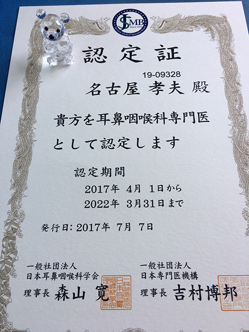 前述のように、今年私は日本耳鼻咽喉科学会認定専門医の更新を行いました。移行期とは言え新専門医制度を踏まえた更新は労力がいる、耳鼻咽喉科医としての実力が試される場面でした。