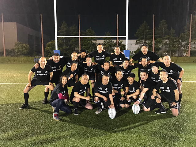 夜7時に日体大ラグビー場に集合した、青葉 BLUE LEAVES の総勢22人。カメラマンはヤマセン・グラスワークスの堀部店長。青葉区の映像の巨匠です。
