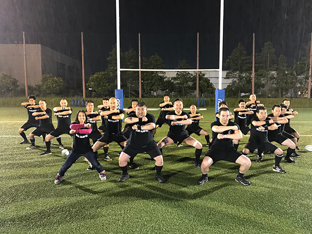 話はどんどん広がり、黒沼さん人脈で日体大ラグビー部、日本ラグビー協会副会長、ラグビートップリーグのリコー・ブラックラムズの選手で元マオリ・オールブラックスの司令塔からHAKAを直接習うというところまで進みました。