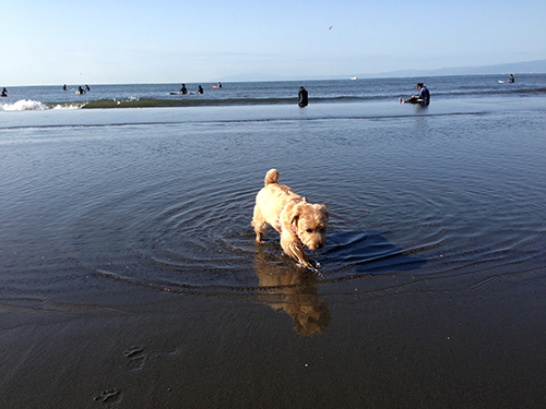 水は、、、苦手でした。はじめて海に来た時、大はしゃぎで海に飛び込んだけど、びっくり!固まってしまい、ゆーっくり後ずさりで戻ってきたヘタレ君でした笑。