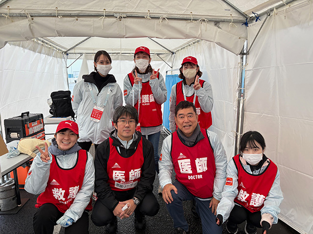 出場ランナーの皆さんは、首都高の折り返し地点で医療チームの赤いビブスを来て声掛け元気な応援をしていたグループを覚えていらっしゃるでしょう。